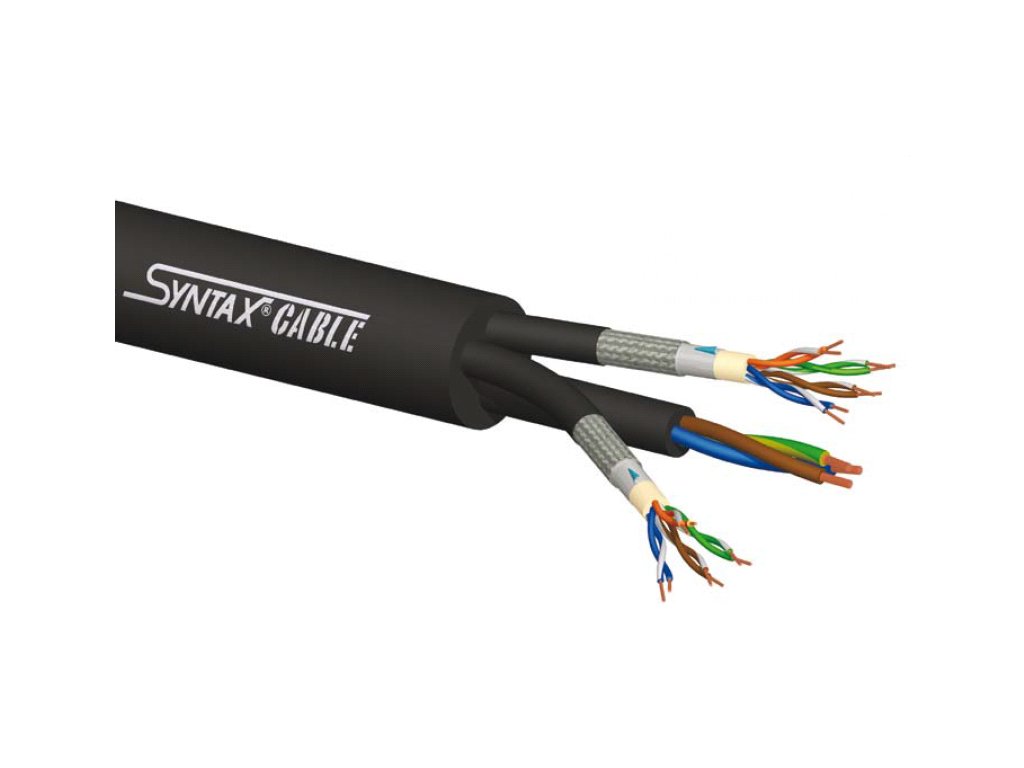 Kombinovaný kabel SYNTAX 7YPW3LN2 nachází své uplatnění v oblasti digitálního značení, kde je vyžadováno čisté, jednoduché a hlavně rychlé propojení. Skládá se ze zdrojového kabelu s vlastním PVC pláštěm, který je v souladu s I.E.C. regulací z důvodu zvýšené bezpečnosti. Datový přenos je zajištěn použitím dvou Cat5e kabelů, které dosahují efektivity kabelu 7XLANCAT5 i v nestandartních zátěžových situacích. Vnější žáruvzdorný PVC plášť je zvlášť ohebný, odolný vůči pošlapání a nárazům, zároveň nekomplikuje manipulaci. Celkový průměr kabelu je 18,6 mm.