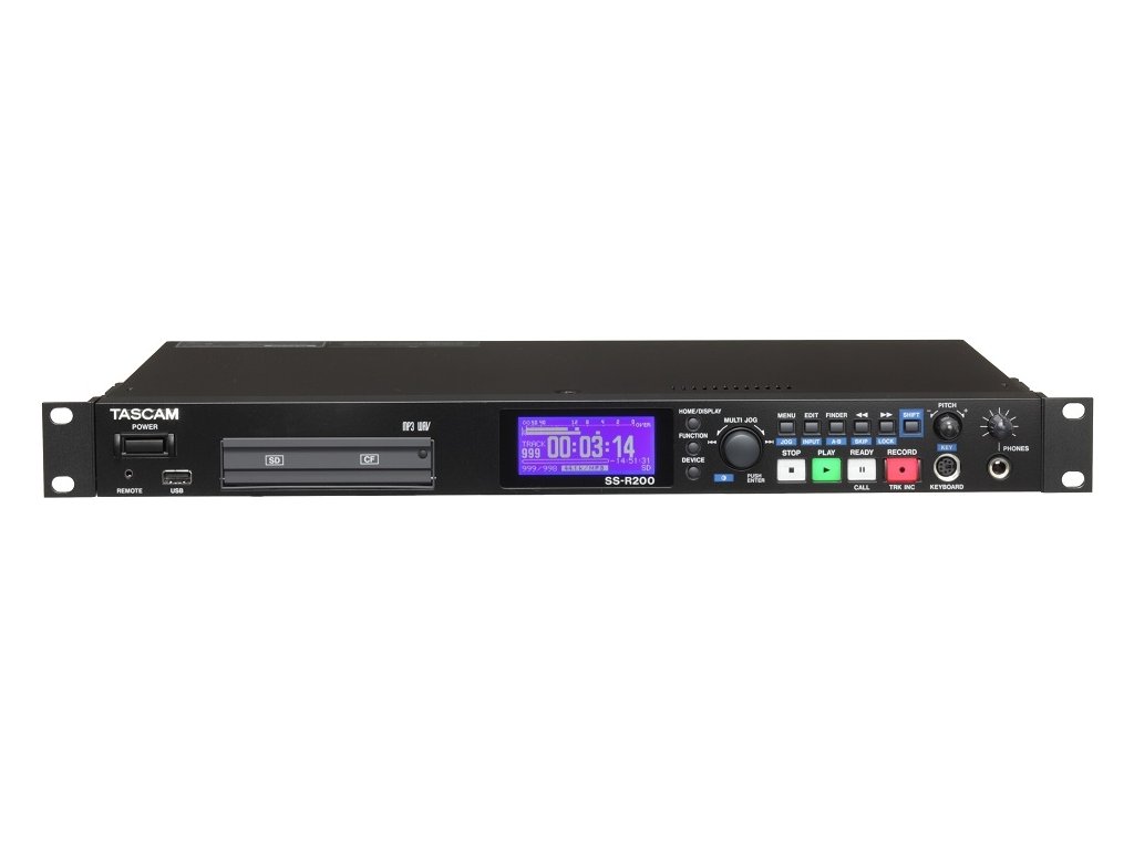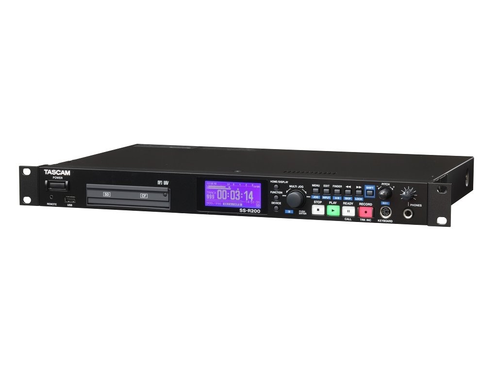 TASCAM SS-R200 Solid State Recorder je kompaktní přehrávač a rekordér o velikosti 1U rackové jednotky určené k záznamu souborů ve formátu WAV a MP3 na paměťové karty typu SD/SDHC či CF (Compat Flash) nebo USB flash paměť. SS-R200 je vybaven 25pin paralelním portem, který slouží k připojení externího controleru RC-SS20 a 9pin (D-Sub) portem RS-232 pro komunikaci s počítačem. Dále je zde konektor k připojení externího ovládání RC-SS2. K rekordéru je možno připojit standardní počítačovou klávesnici s rozhraním PS/2 i USB. K dispozici jsou analogové symetrické (XLR) či nesymetrické (RCA) vstupy a výstupy, digitální koaxiální S/PDIF vstup / výstup a sluchátkový 1,4“ jack výstup na čelním panelu.