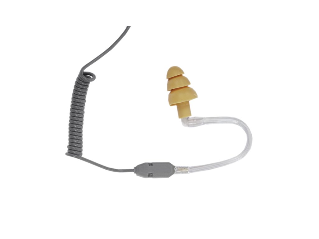 sluchátko do zvukovodu (špunt), 500 Ohm, citlivost 104 dB, balení: silver box, clip, náhradní špunt, krátká zahnutá zvuková trubice, šedý měnič, šedý krouc. kabel, úhlový jack 3,5 mm monoDodatočné parametre