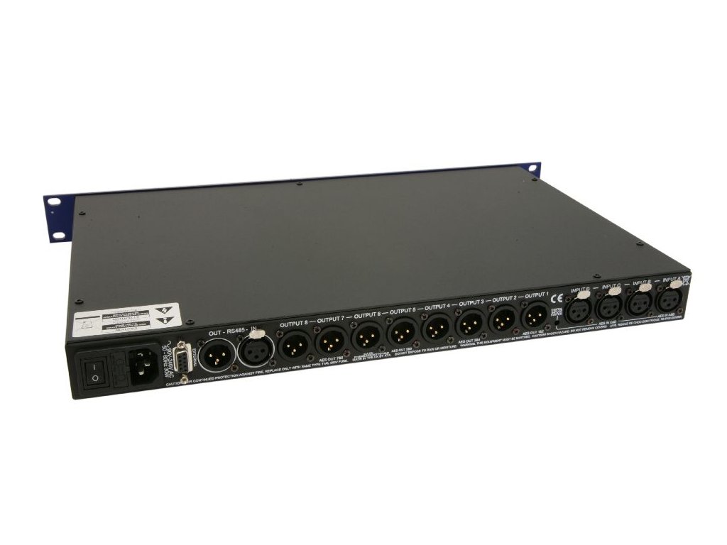 XTA DP448 • DSP audio procesor • 4x vstup, 8x výstup (flexibilní směrovaní) • vstup (ovládání zisku, delay, 28-pásmový GEQ, 8-pásmový PEQ, 3-pásmový DEQ) • výstup (ovládání zisku, delay, HP/LP filtr crossoveru, 9-pásmový PEQ, otočení polarity, kompresor s proměným knee, programový a clip limitér) • AES/EBU vstup/výstup • ADDA 24bit/96kHz • RS232, RS485, volitelně GPI • paměť na 255 nastavení • rozměry 482x300x44(mm) • hmotnost 3,3 kg
