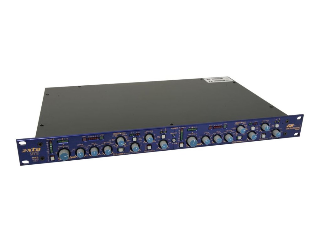 XTA G2 • duální gate/expandér se sidechain filtrem • ADDA 24bit/48kHz, 40bitové interní zpracování • stereo/dual mono režim • elektronicky symetrizované vstupy/výstupy(XLR) • volitelně AES/EBU vstup/výstup, galvanické oddělení vstupů/výstupů • RS232, RS485 • rozměry 482x300x44(mm) • hmotnost 3,5 kg