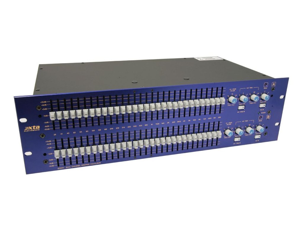 XTA GQ600 je přesný duální grafický ekvalizér (1/3 okt.), který umožňuje zvýšit nebo snížit o 10dB až 30 frekvencní mezi 25Hz a 20kHz. 45mm tahové potenciometry nabízejí dostatečné rozlišení. XTA GQ600 má nízké zkreslení a úroveň vstupního šumu lepší než 98dBm. Každý kanál obsahuje shelv filtr na vysoké frekvence s ovládáním zisku a frekvence, které umožňují rychlou úpravu vysokých frekvencí. HP filter nabízí nastavitelnou frekvenci od 10Hz do 150Hz. Na desce plošných spojů je přítomen LP filter, který lze aktivovat pomoci jumperů a slouží pro ochranu výškových měničů. Audio vstupy/výstupy jsou realizovány konektory XLR a konektory Klippon (euroblok) a všechny jsou elektronicky symetrizované. Volitelně lze instalovat galvanické oddělení vstupů/výstupů. K dalšímu vybavení GQ600 patří reléový bypass, indikátor špiček a volitelný kryt z perspexu. Každý přístroj je minimálně 48h zahořen a testován v továrně.