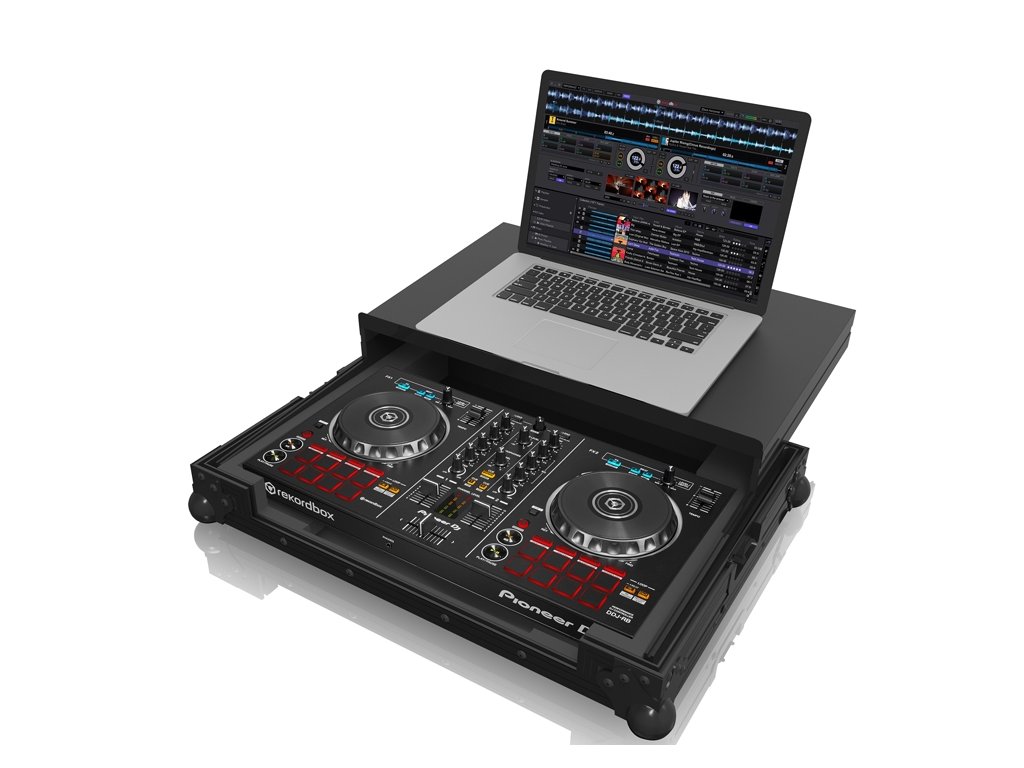 Flightcase P-DDJ-RB plus NSE od značky ZOMO je praktická ochrana pro midikontrolér Pioneer DJ DDJ-RB a notebook. Díky vysouvací a polohovací poličce, která je opatřena fixačními řemeny, je možné ergonomické rozmístění všech zařízení (např. efektů a bicích automatů). Celý flightcase je složen z 9 mm překližky s hliníkovými kulovými rohy a lištami, které jsou všechny lakované na černo (NSE = NIGHT STYLE EDITION). Kvalitní butterfly zámky je možné volitelným visacím zámkem uzamknout a celkově zajišťují pevné uzavření kufru.